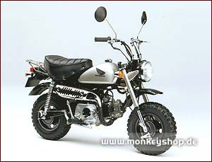 Honda Monkey 50 cc, Made in Japan, Mokickzulassung, 4-Gang, Handkupplung, CDI-Zündung, 12 Volt, 8“ Räder, Gepäckträger, silber-schwarz, das Original… 2999 €