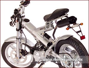 Sachs Madass 50 cc, Mokick- oder Mofazulassung,, , 4-Ganggetriebe, Handkupplung, CDI-Zündung, 12 Volt, hydraulische Teleskopgabel, Scheibenbremse vorn und hinten, schwarz oder silber…1999 € (lieferbar ab 3/04) Mokick mit Zweipersonenzulassung